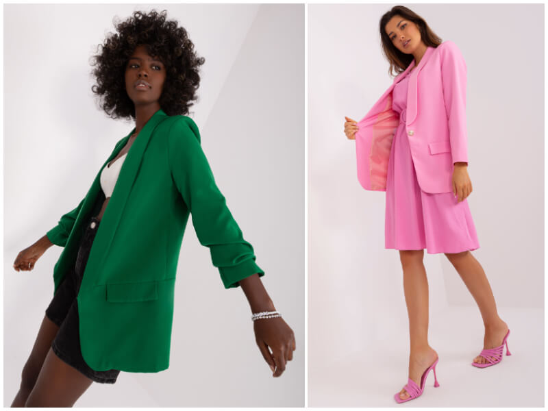 Vzhled ženského saka je obvykle založen na střihu zděděném od mužského protějšku, i když se postupem času vyvinul a přizpůsobil se ženské postavě. Tento elegantní oděv se obvykle vyznačuje zapnutou přední částí a límcem s klopami a manžetami. Může mít různé délky, od krátkých povlaků až po delší verze dosahující až do poloviny stehen. Dnes velkoobchod s blejzrem (PL. bundy velkoobchod) nabízí celou řadu střihů, které dokonale zapadají do potřeb moderních žen.
