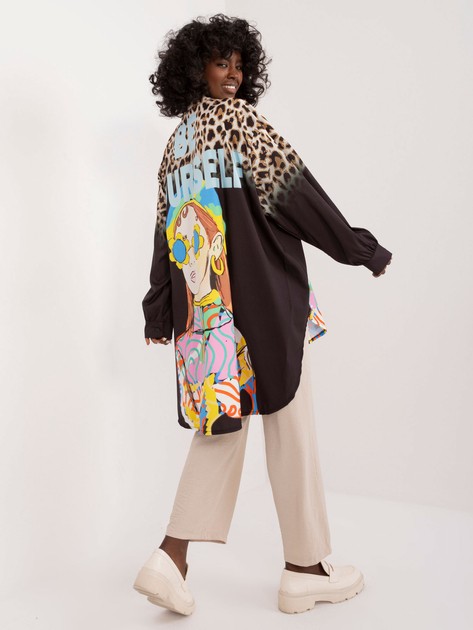 Vyrobeno z vysoce kvalitních materiálů, zaručuje pohodlí při nošení po celý den. Volný střih neomezuje pohyby a vypadá skvěle jak v kombinaci s úzkými kalhotami, tak s elegantní sukní. Černá košile s výrazným potiskem dodává charakter a činí z tohoto oděvu středobodem každého oblečení. Silný, ale jemný design přitahuje oko a umožňuje vyjádřit svou osobnost.