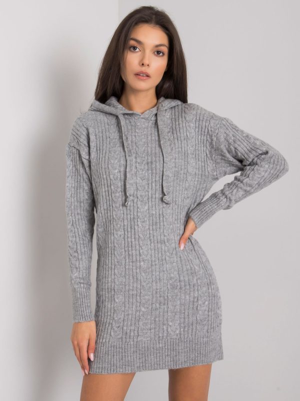 Velkoobchod Šedé pletené šaty s kapucí Joselita RUE PARIS