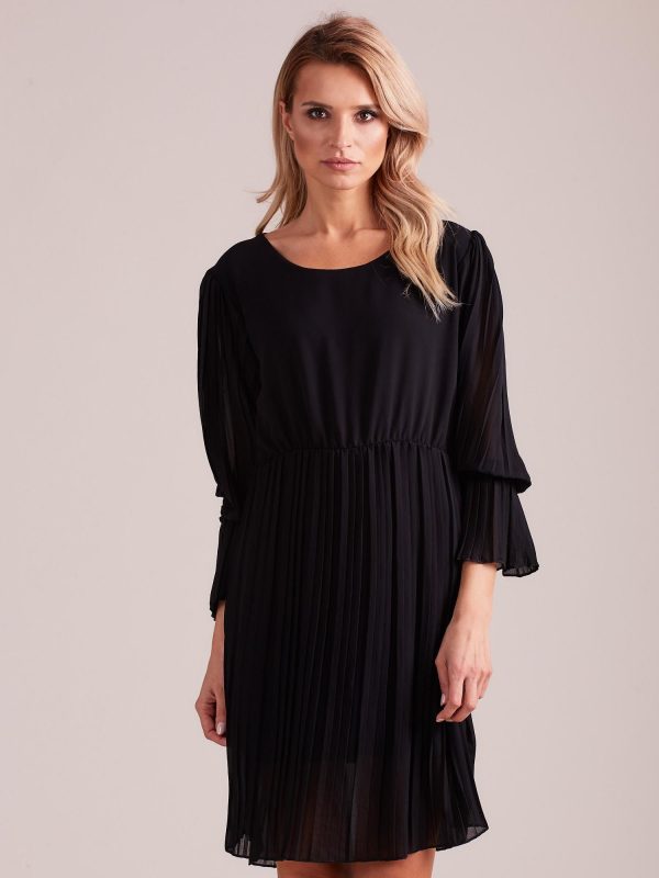 Velkoobchod Černé žebrované šaty se štěrbinou