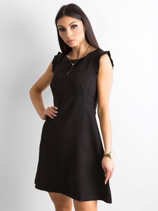 Velkoobchod Černé šaty s volánky a vazbou