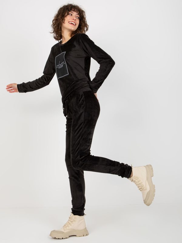Velkoobchod Černý dvoudílný velurový set Roxe RUE PARIS