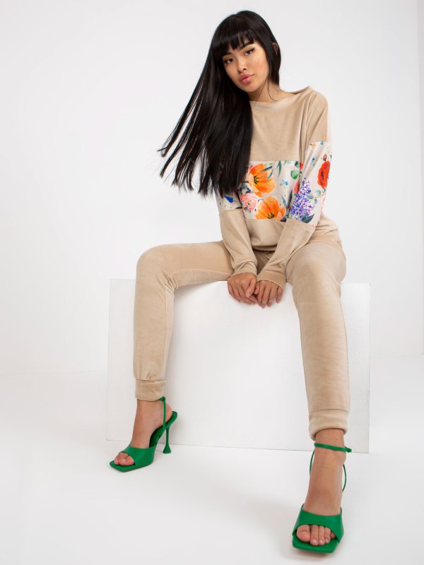 Velkoobchod Dvoudílný velurový set béžový RUE PARIS