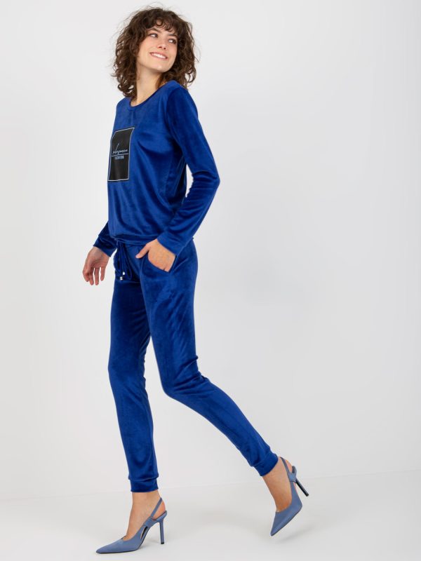 Velkoobchod Kobaltová dámská potištěná velurová sada