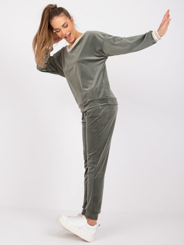 Velkoobchod Khaki velurová sada Brenda RUE PARIS