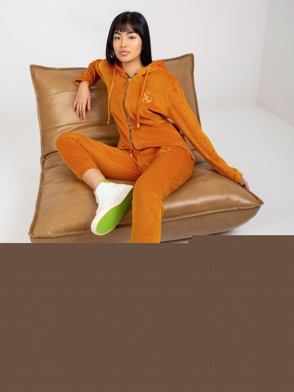 Velkoobchod Tmavě oranžová dámská velurová sada s nášivkou