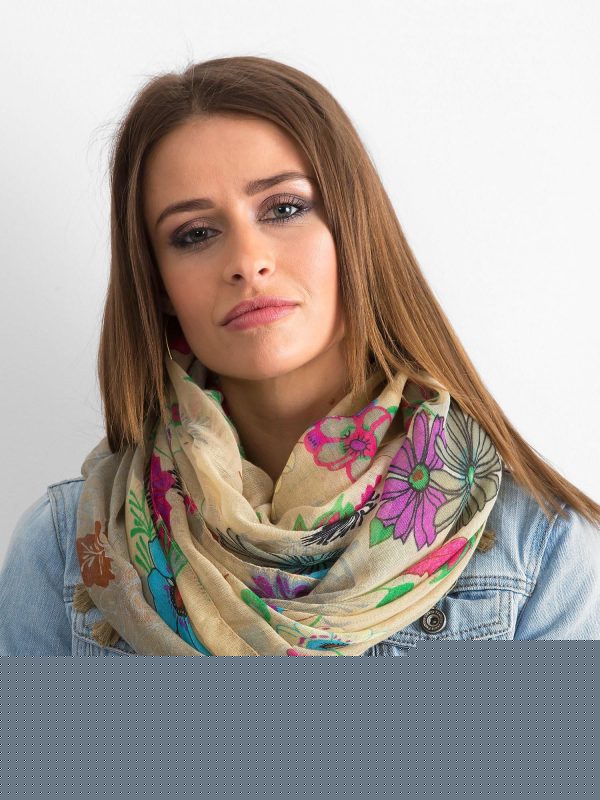 Velkoobchod Béžová dámská šála s mřížkovým vzorem