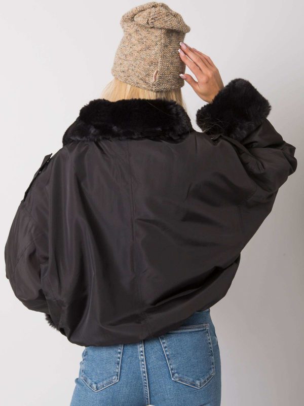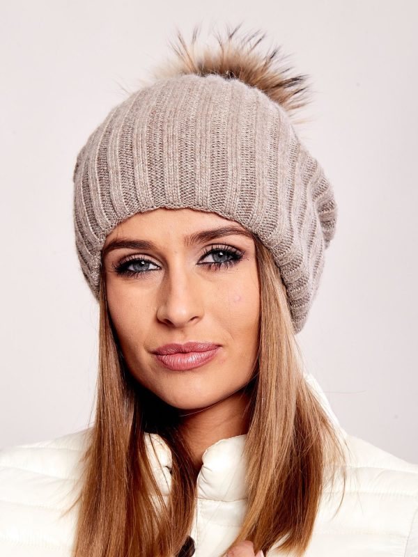 Velkoobchod Béžová žebrovaná čepice s kožešinovou bambulí
