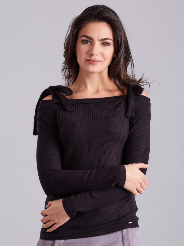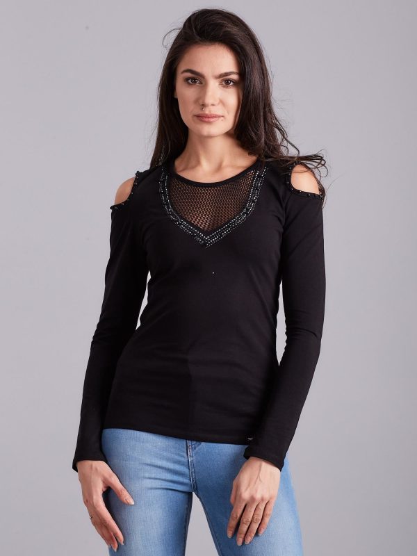 Velkoobchod Černá studená ramenní halenka s aplikací