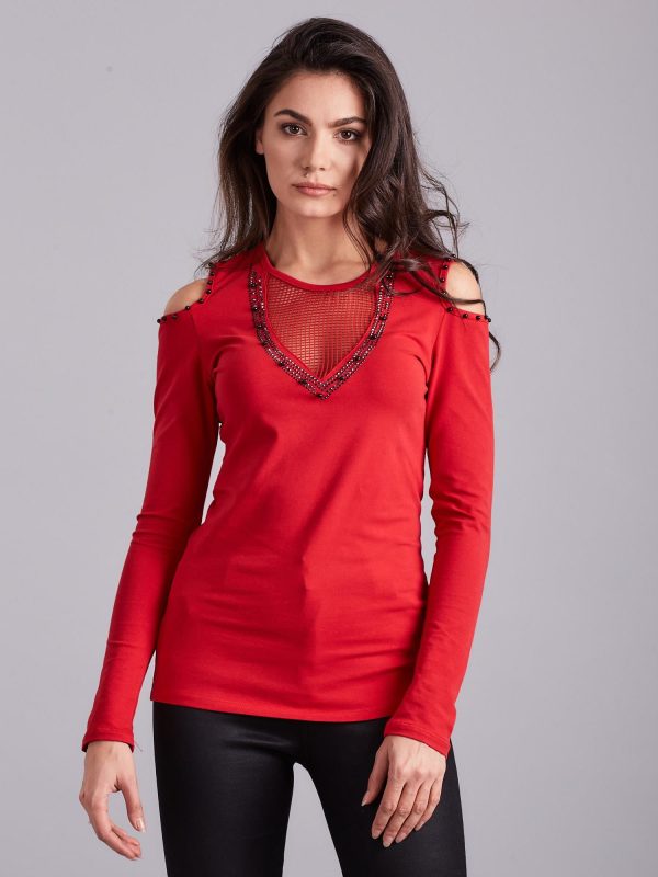 Velkoobchod Červená studená ramenní halenka s aplikací