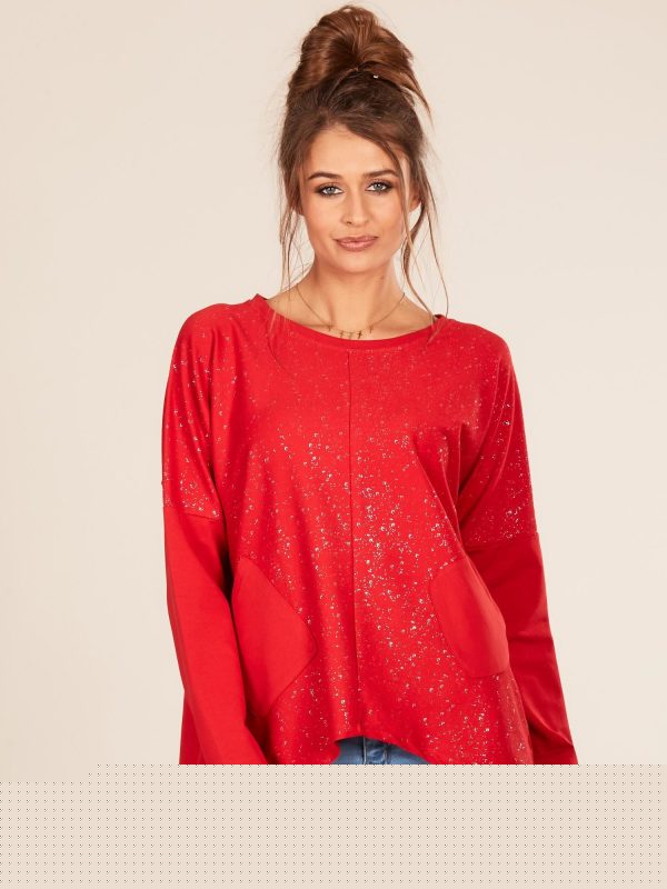 Velkoobchod Červená halenka s ozdobným výstřihem