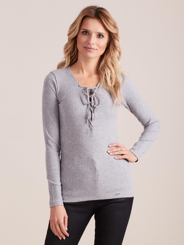 Velkoobchod Šedá proužkovaná halenka se šněrováním