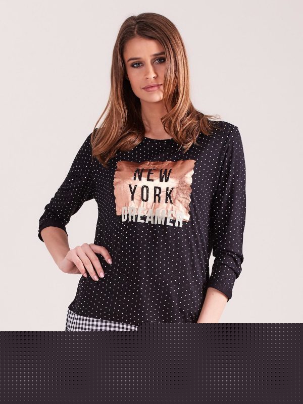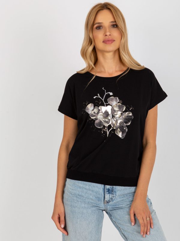 Velkoobchod Černá ležérní halenka s potiskem RUE PARIS