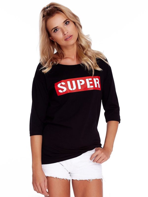 Velkoobchod Černá nadměrná halenka s nápisem SUPER
