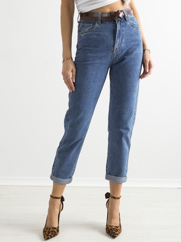 Velkoobchod Džínové kalhoty s vysokým pasem tmavě modré