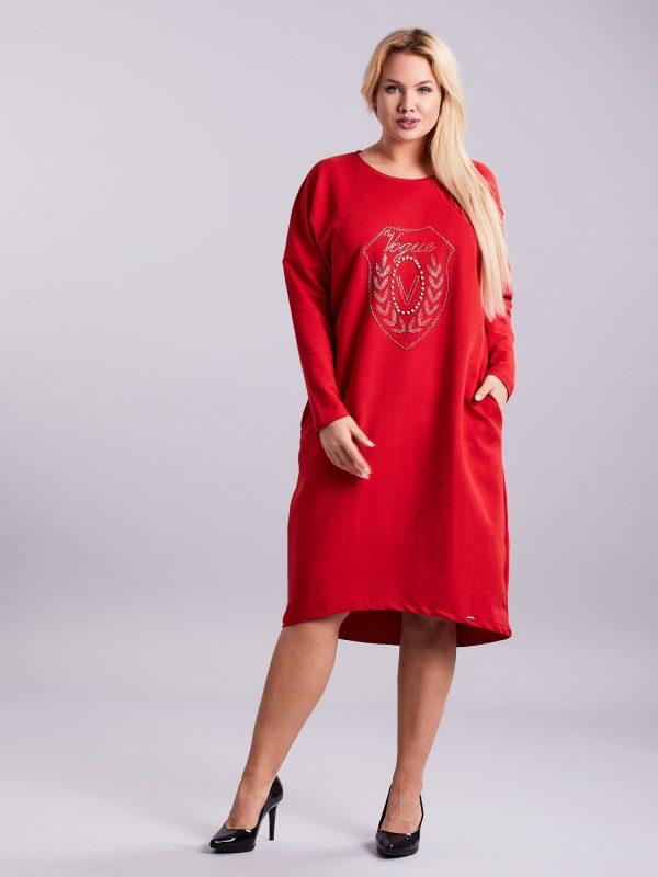 Velkoobchod Červené mikiny šaty s kapsami PLUS SIZE