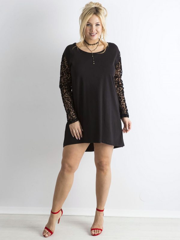 Velkoobchod Černé volné šaty s ozdobnými rukávy PLUS VELIKOST